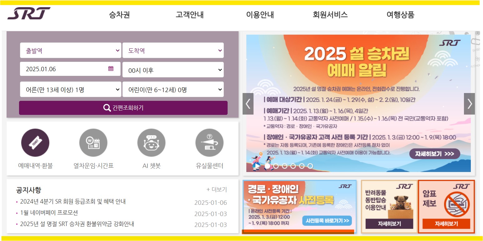 - 사전 등록: 장애인·국가유공자 사전 등록은 2025년 1월 3일(금) 12:00 ~ 1월 9일(목) 18:00까지 SR 홈페이지에서 가능.